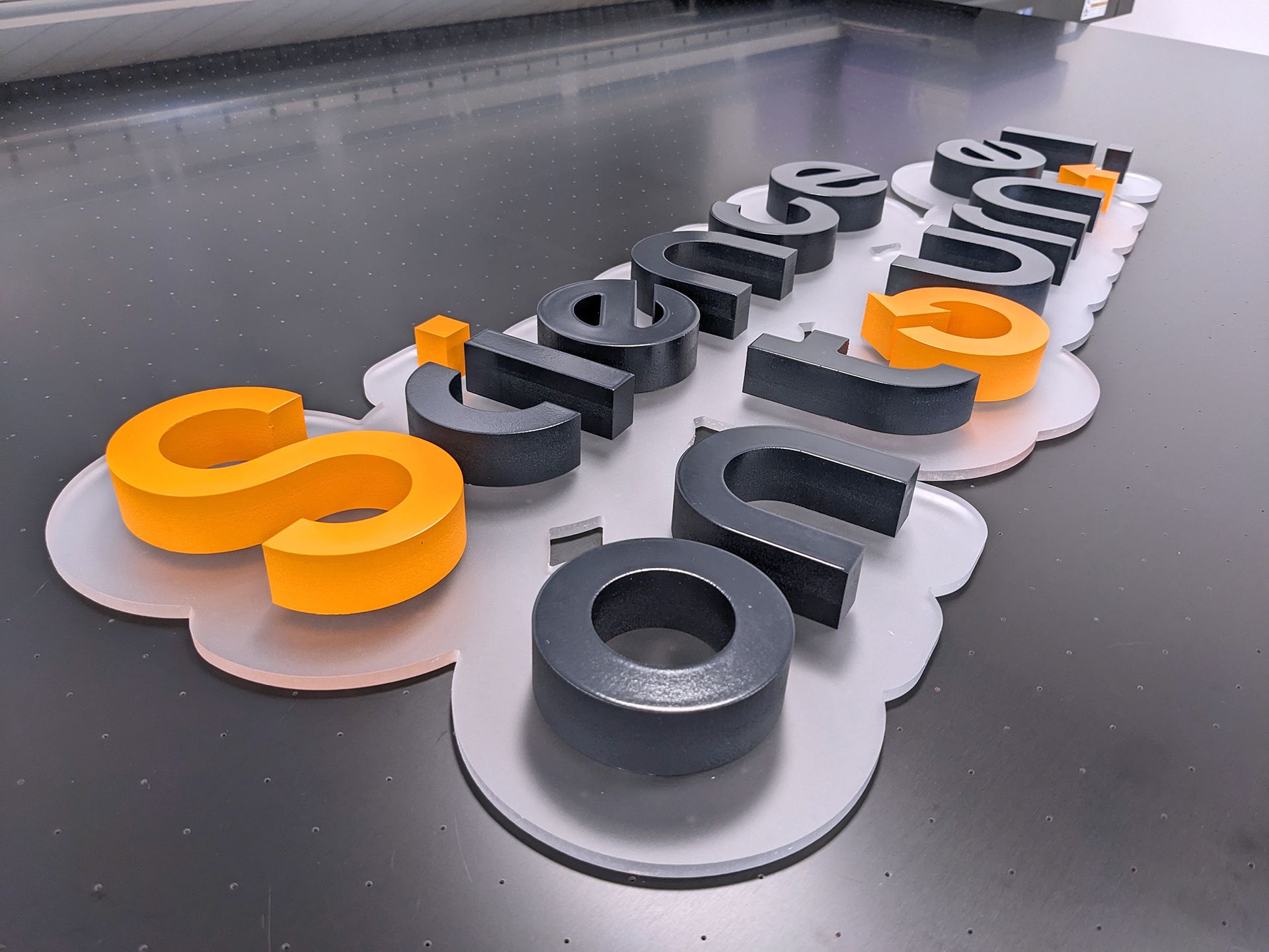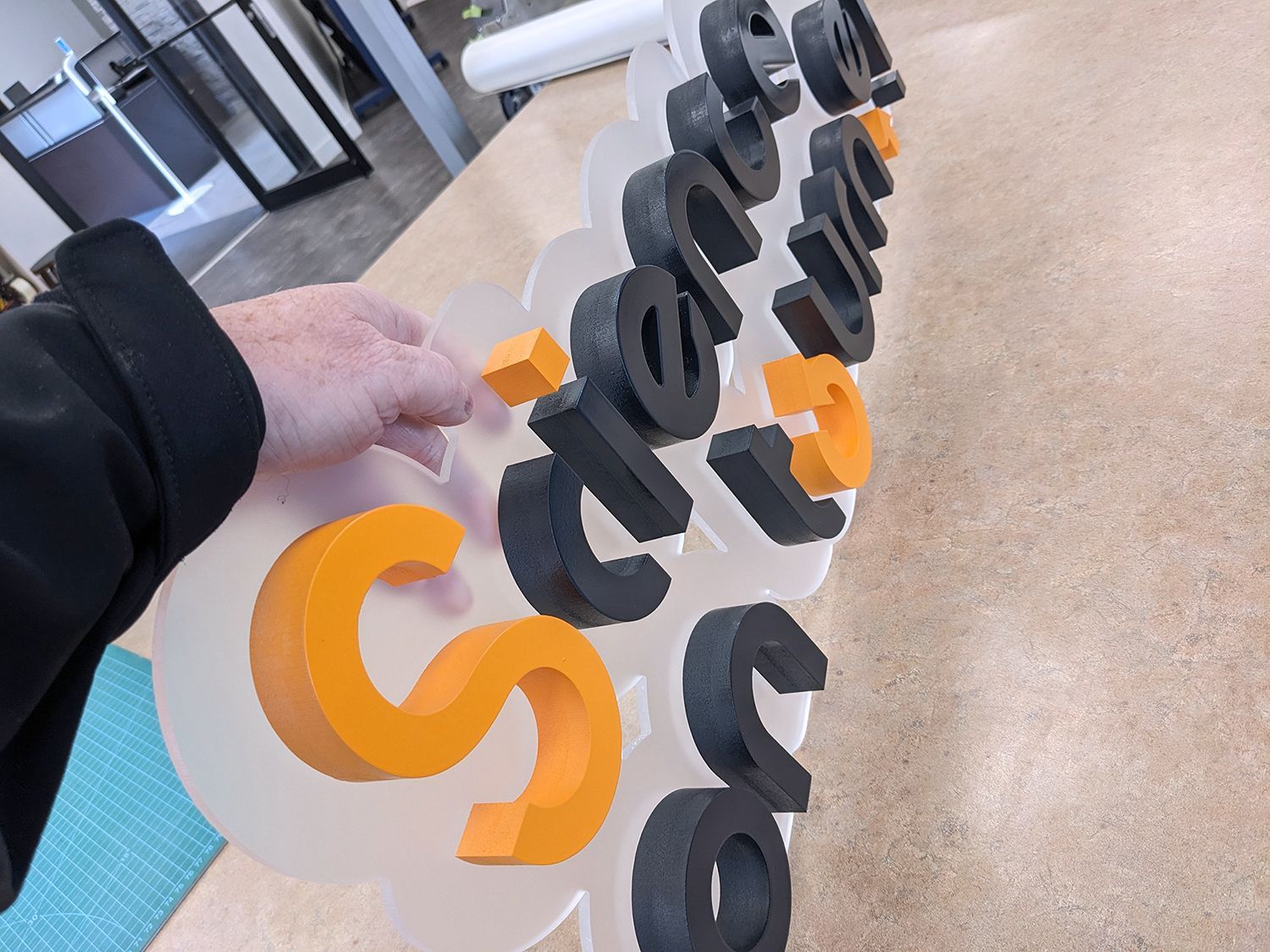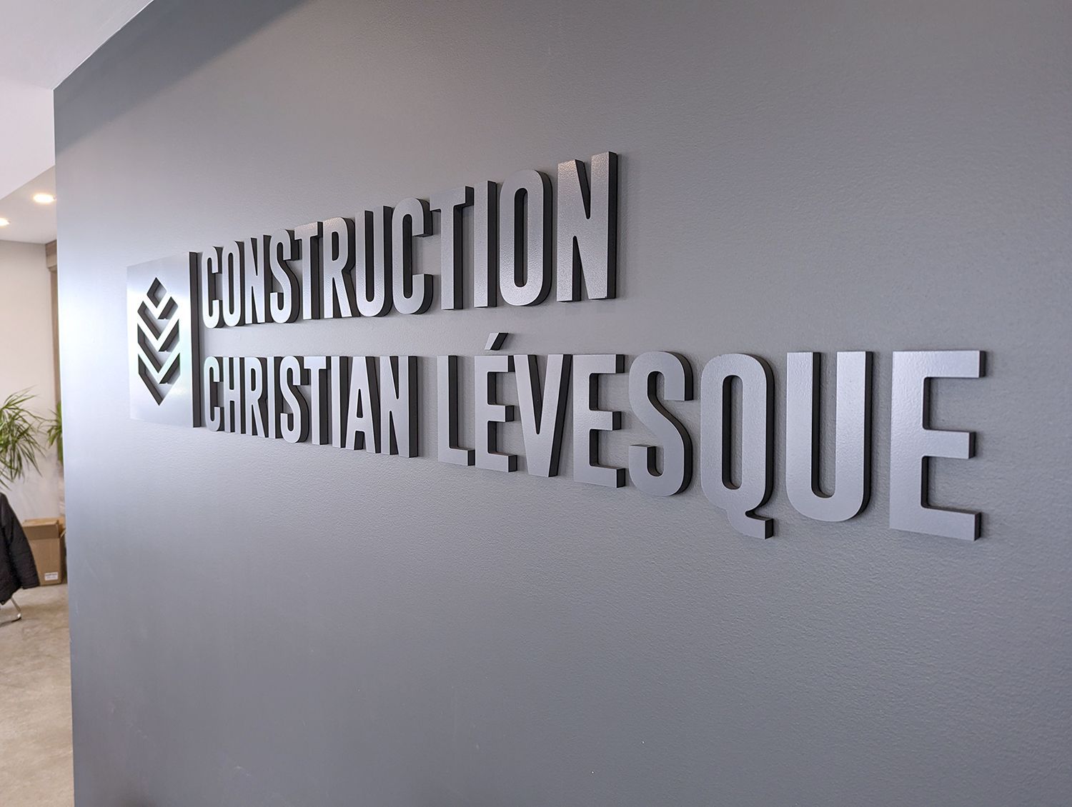 Offrez à vos espaces une dimension unique avec notre service de signalisation et d'identification 3D sur mesure. Que ce soit pour votre logo, votre slogan, vos valeurs, de la signalétique, des pictogrammes, ou toute autre forme personnalisée, nous transformons vos idées en réalisations visuellement frappantes et parfaitement adaptées à vos besoins. Nos solutions sont disponibles dans une large gamme de matériaux et d'épaisseurs, conçues pour un usage intérieur ou extérieur. Grâce à notre service de peinture de calibre professionnel, nous offrons une diversité de couleurs presque illimitée.